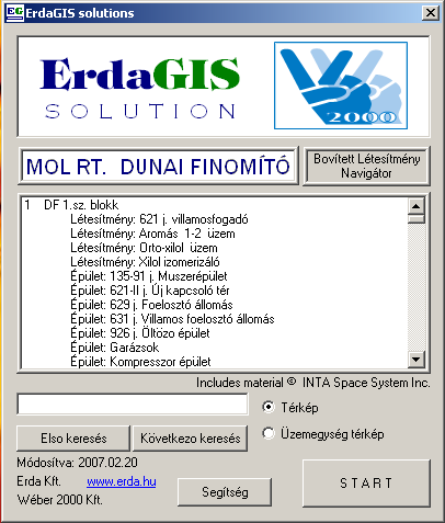 Mol Rt. Dunai Finomító Létesítmény NavigátorEz az egyszerű alkalmazást a Wéber 2000 Kft. megbízásából fejlesztettük ki 2004-ben, amely a területen dolgozók könnyebb tájékozódását segíti a finomító létesítményei között. Tartalmaz áttekintő térképet, egy aktuális színes műholdfelvételt a területről, és a részletes üzemegység térképeket.